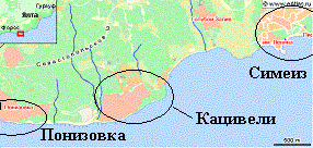 ![]() Кацивели - небольшой поселок городского типа. Расположен межлу Ялтой и Форосом, а еще точнее между Симеизом (3 км) и Понизовкой. Вообще, насколько я понимаю, раньше поселок развивался исключительно только как научный центр - в поселке находится отделение Морского гидрофизического института АН им.Шулейкина, есть отдел радиоастрономии Крымской астрофизической обсерватории, лаборатории Гелиотехнической базы и пр. Живо ли сейчас все это - неизвестно. Мы заходили на территорию института - все как-то заброшено, пустынно, пару зданий, видимо административных, сдают отдыхающим. Для более плодотворного творчества ученых мужей был построен санаторий, который так и назвали - Дом творчества ученых Кацивели. Сейчас это обыкновенный пансионат, многие турфирмы предлагают туда путевки. Вот, собственно, и все основные достопримечательности поселка. Научная, скажем так, ориентация поселка не способствовала развитию его, как курорта (я даже где-то читала, что руководство института не поощряло своих сотрудников, принимающих туристов), поэтому Кацивели до недавнего времени оставался неизвестен широкой публике.С одной стороны, это хорошо - людей приезжает немного, море чистое, на пляжах места хватает всем (и даже еще остается :)). Тихо, спокойно (музыка только возле моря - дискотека и кафе, причем дискотека не каждый день, а диско с Голубого залива почти не слышно). С другой стороны, это небольшой выбор жилья весьма неприглядного качества, но с завышеными ценами. И нет эдакого южнобережного колорита - скорее, природа похоже на восточный Крым. (и интернета нет! только по GPRS...) Пару лет назад рядом с Кацивели появился первый в Крыму аквапарк "Голубой залив". Народу стало приезжать больше, в поселке начали строить более-менее нормальные коттеджи, появились магазины, в общем городок стал приобретать курортный вид. Сами мы из