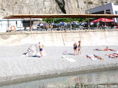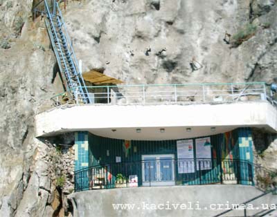 Выход на пляж из подземного лифта (вверху видна старая лестница - сейчас закрыта)